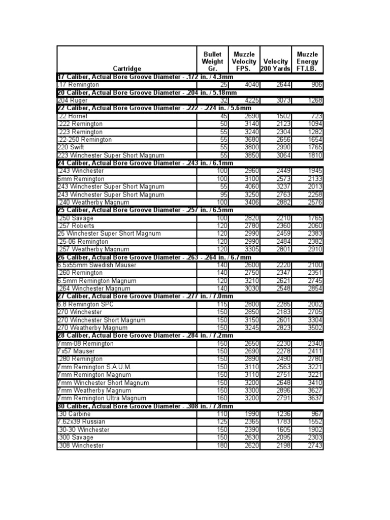 Ballistic Chart Caliber Firearms Free 30 Day Trial Scribd