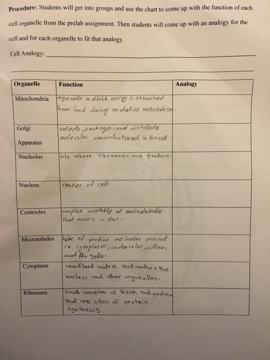 Cell Organelles And Their Functions Chart Fill Out And Cuitan Dokter