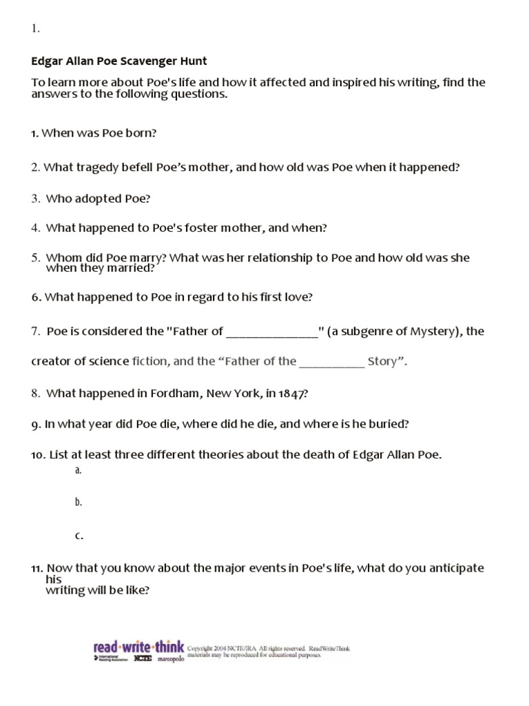 Edgar Allan Poe Scavenger Hunt Fiction And The Father Of The