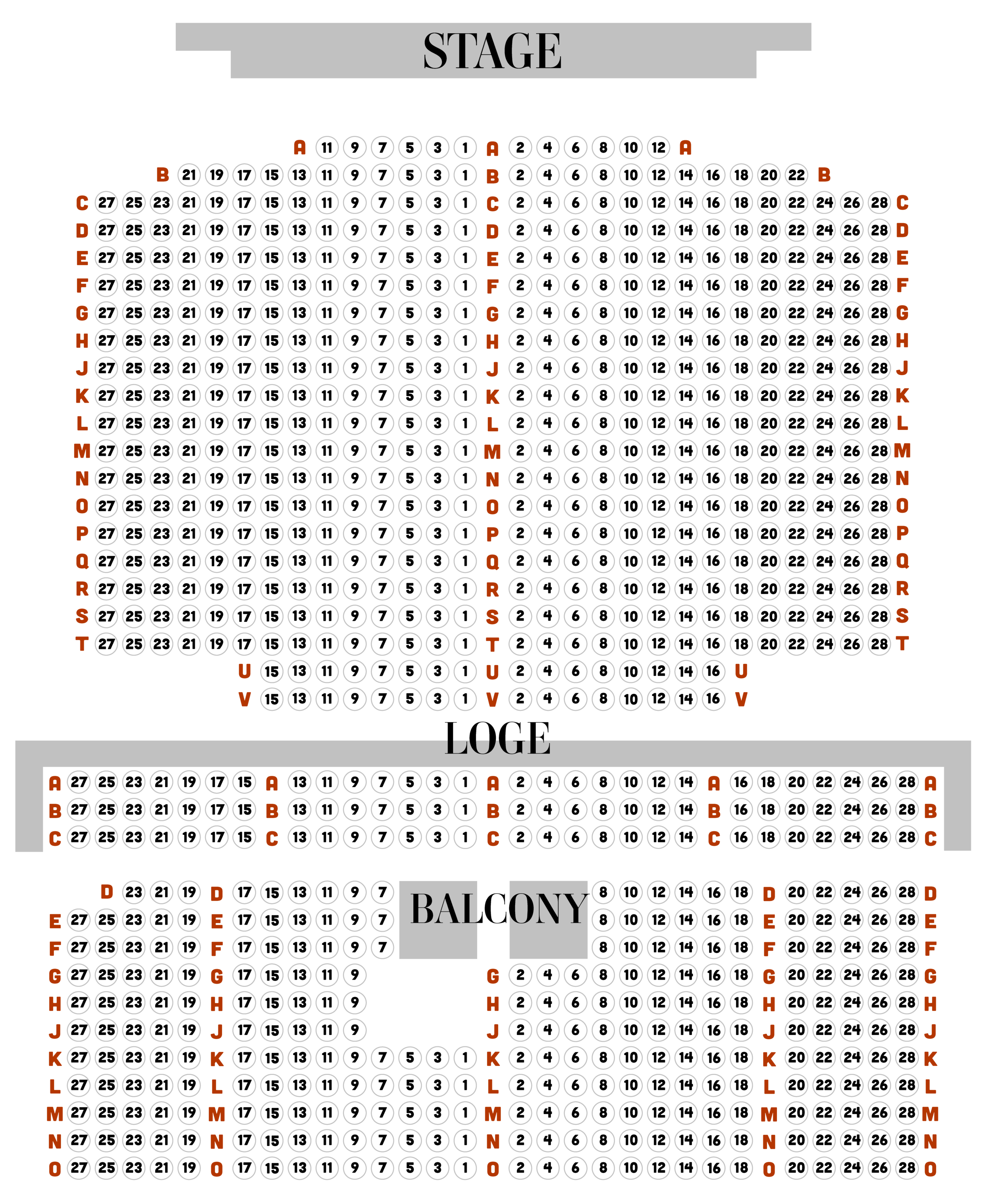 Seating Chart Tennessee Williams Theatre