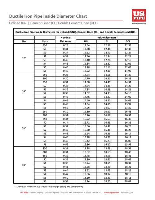 Ductile Iron Pipe Inside Diameter Chart