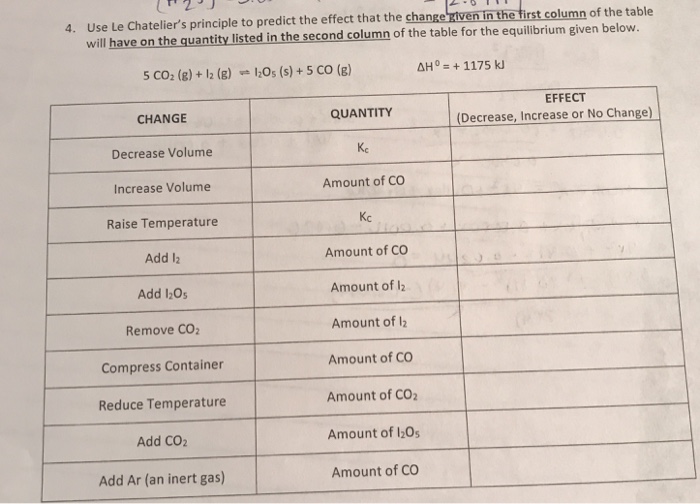 Solved Name Le Chatelier S Principle Le Chotolier S Princ