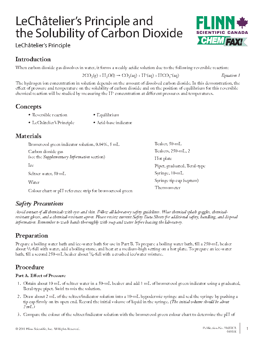 Lechatelier S Principle And The Solubility Of Carbon Dioxide
