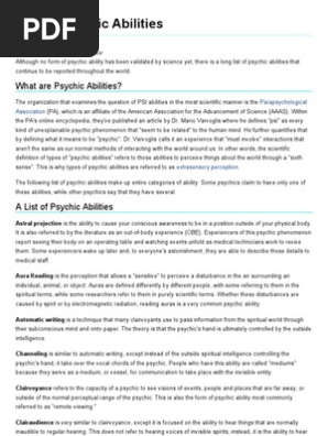 List Of Psychic Abilities Parapsychology Clairvoyance Free
