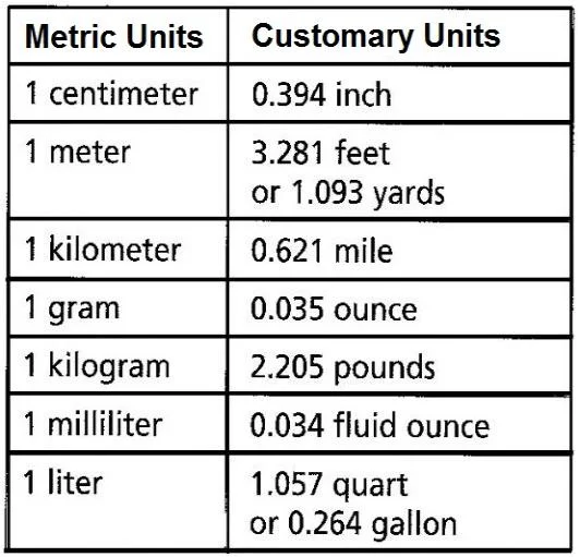 Converting Between Customary And Metric Units Chart