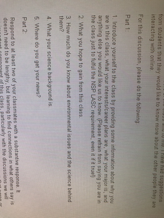 My Online Class Was Instructed To Post A Short Introduction About