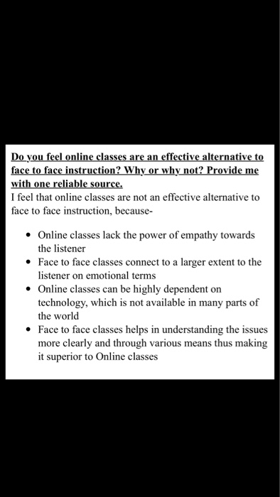 Solved Please In One Paragraph Do You Feel Online Class