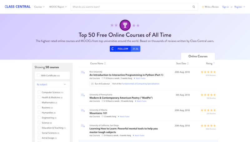 The Top 100 Free Online Courses According To Class Central Ibl