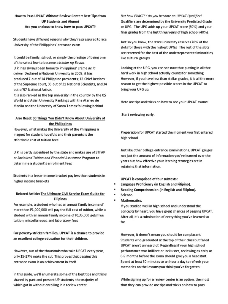 How To Pass Upcat Without Review Center Best Tips From Up Students