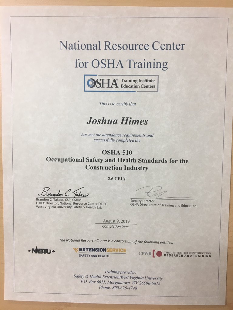 Osha Trainer Course For The Construction Industry Asu Mid South