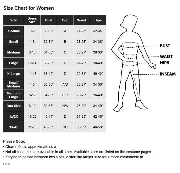 Party City Costume Size Chart Trinity