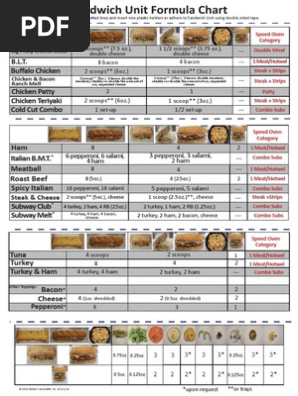 Http 4subway Com Wp Content Uploads 2013 01 Sandwich Unit Formula Chart 10 31 20121 Pdf