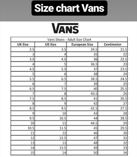 Image Result For Vans Shoe Size Chart Kids And Womens Shoe Size